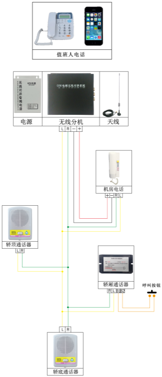GSM電梯無線對(duì)講系統(tǒng)結(jié)構(gòu)示意圖